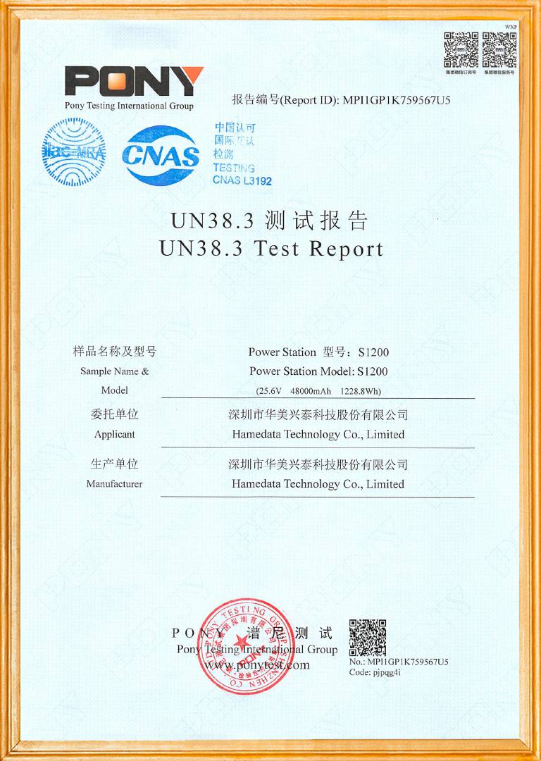 UN38.3证书